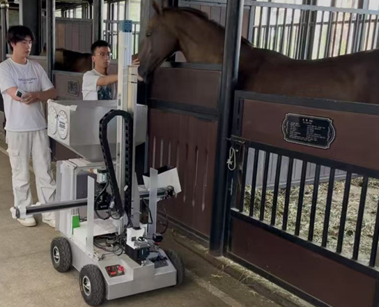 2025年10月24日,烏魯木齊達坂城區白楊溝村,牧民朱瑪哈力正在配合新疆野馬文化發展有限公司馬(野馬公司)育種技術人員,對馬匹進行孕檢。 得益于自治區現代畜禽種業提升專項資金的支持,在烏魯木齊市農業農村局、高新區農業農村局的指導下,2025年,野馬文化公司利用優質馬種質資源和細管凍精技術,為烏魯木齊周邊農牧民免費開展馬品種改良和繁育工作,朱瑪哈力就是受益者之一。早在2024年,野